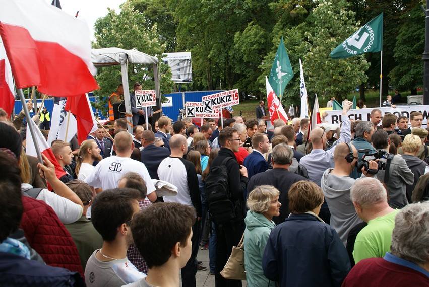 Возмущённые граждане вышли 7 июля на протестную демонстрацию у стен сейма. В ней приняли участие оппозиционные политики и видные общественные деятели (поэт Станислав Сроковский, чьи произведения стали основой для сценария фильма Войцеха Смажовского «Волынь», ксендз Тадеуш Исакович-Залесский), известные принципиальным непринятием заигрывания ПиС с убийцами волынских поляков.