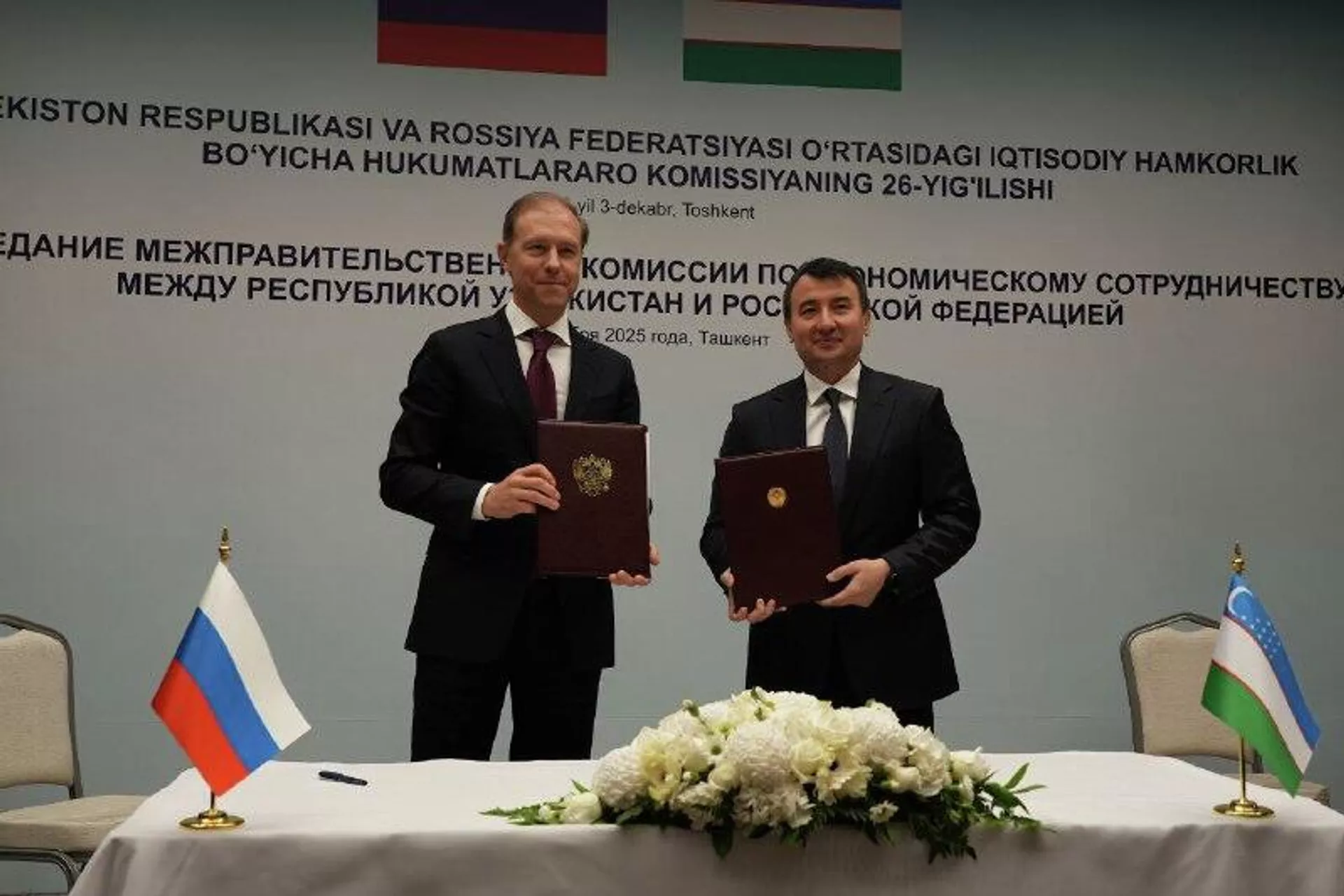 Встреча прошла в Ташкенте на полях 26-го заседания межправительственной комиссии по экономическому сотрудничеству, где стороны обсудили рост взаимной торговли, которая за девять месяцев 2025 года увеличилась на 8%, а в прошлом году превысила 800 миллиардов рублей.