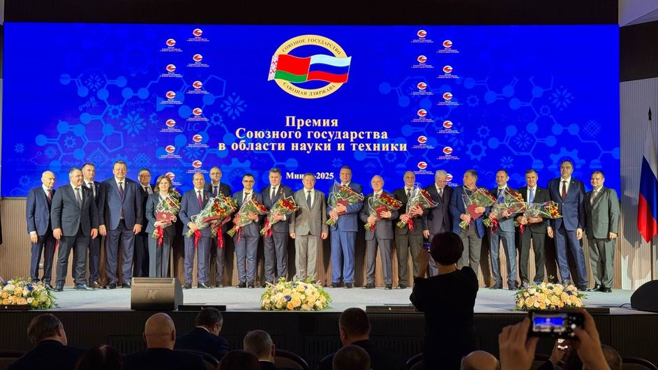 В Минске состоялась торжественная церемония вручения премии Союзного государства в области науки и техники, которую в 2025 году получили два совместных авторских коллектива из Беларуси и России, сообщает БЕЛТА.