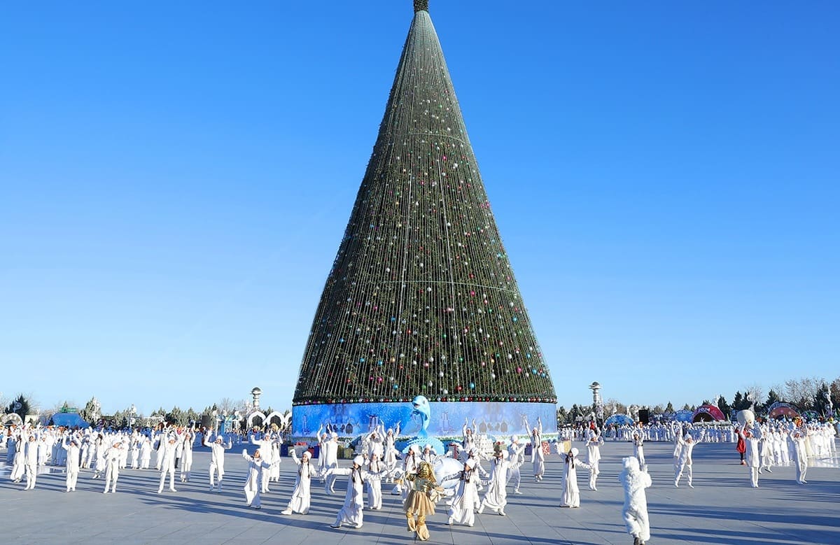 Ель из Ашхабада можно считать самой высокой и в СНГ. Ташкент и Бишкек украсили елки 35-метровой высоты. Размер елей, установленных в Баку – 34 метра, в Минске – 30 метров. Московское дерево, установленное на Соборной площади в Кремле, выросло до 26 метров.