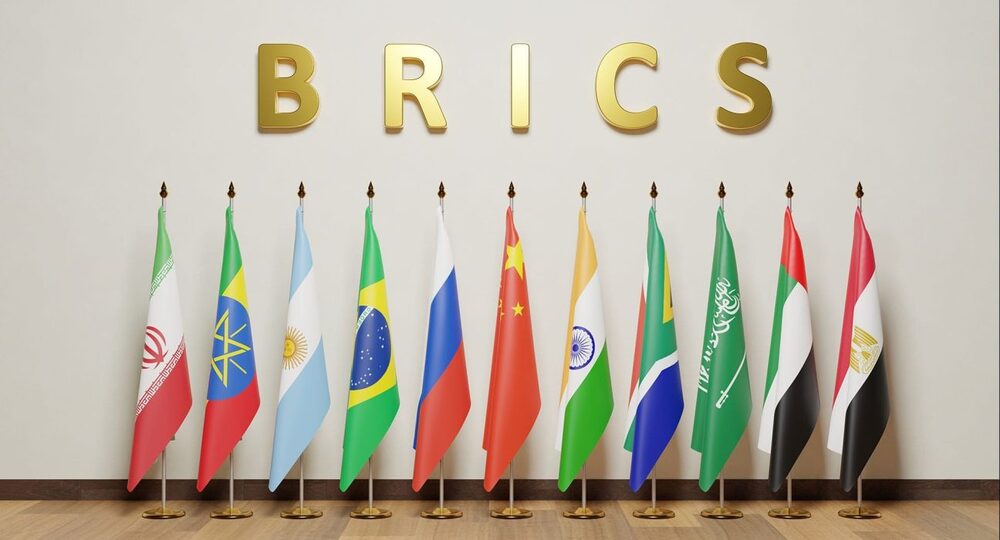 БРИКС объединяет Бразилию, Россию, Индию, Китай и Южно-Африканскую Республику. В 2024 году к группе присоединились Египет, Иран, ОАЭ и Эфиопия.