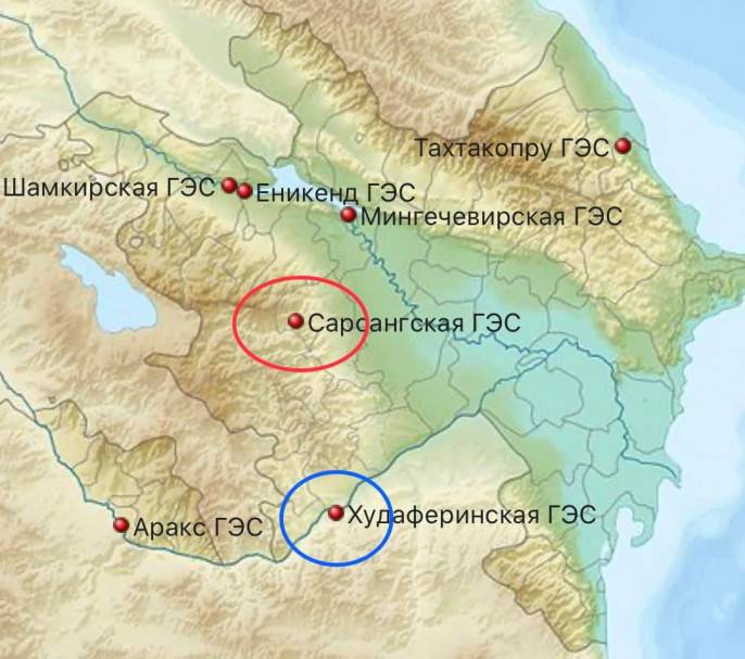 Основные гидроэнергетические объекты центрального (азербайджанского) сегмента электрокоридора РФ–Азербайджан–Иран