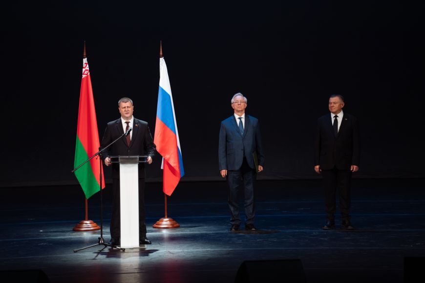 В начале вечера были зачитаны приветствия президентов Беларуси и России, а также председателя Парламентского собрания Союзного государства. Затем состоялся концерт с участием ведущих коллективов и артистов двух стран.